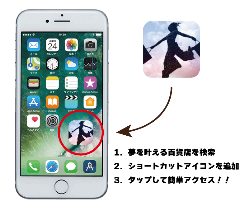 各種ブラウザの検索窓から「夢を叶える百貨店」と検索してアクセスしてください。