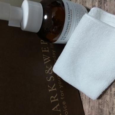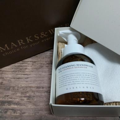 MARKS&WEBのフォーミングハンドウォッシュとオーガニックコットンタオルです。