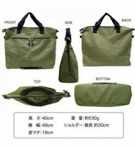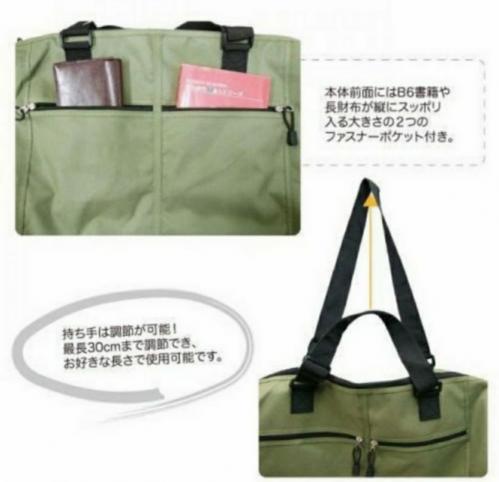 A3が入るトートバッグ カーキ 横型 ショルダー調節可能 旅行 トラベル