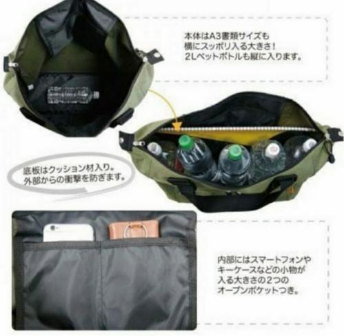 フリーマーケット / ファッション雑貨 / A3が入るトートバッグ カーキ 横型 ショルダー調節可能 旅行 トラベル