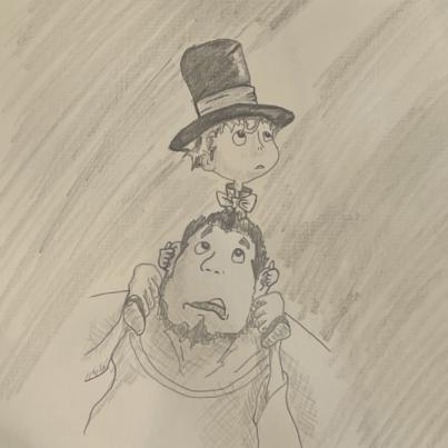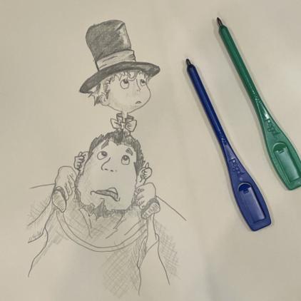 絵本作家、西野亮廣さんの描いた絵を真似して、絵の練習で、描いています。
